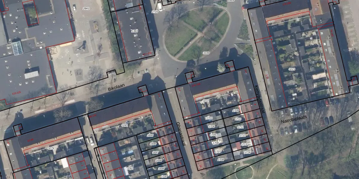 Het perceel waarop Ghanastraat 1 staat heeft een oppervlakte van 859 m². Dit is een groot perceel. De perceeloppervlakte wordt geregistreerd door het Kadaster. Gedetailleerde informatie over de maten van dit perceel kunt u vinden in het rapport Kadastrale kaart met maatvoering van Ghanastraat 1.