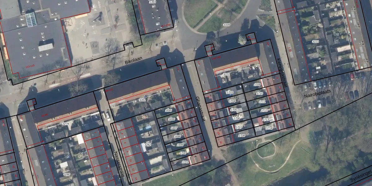 Het perceel waarop Ghanastraat 4 staat heeft een oppervlakte van 864 m². Dit is een groot perceel. De perceeloppervlakte wordt geregistreerd door het Kadaster. Gedetailleerde informatie over de maten van dit perceel kunt u vinden in het rapport Kadastrale kaart met maatvoering van Ghanastraat 4.