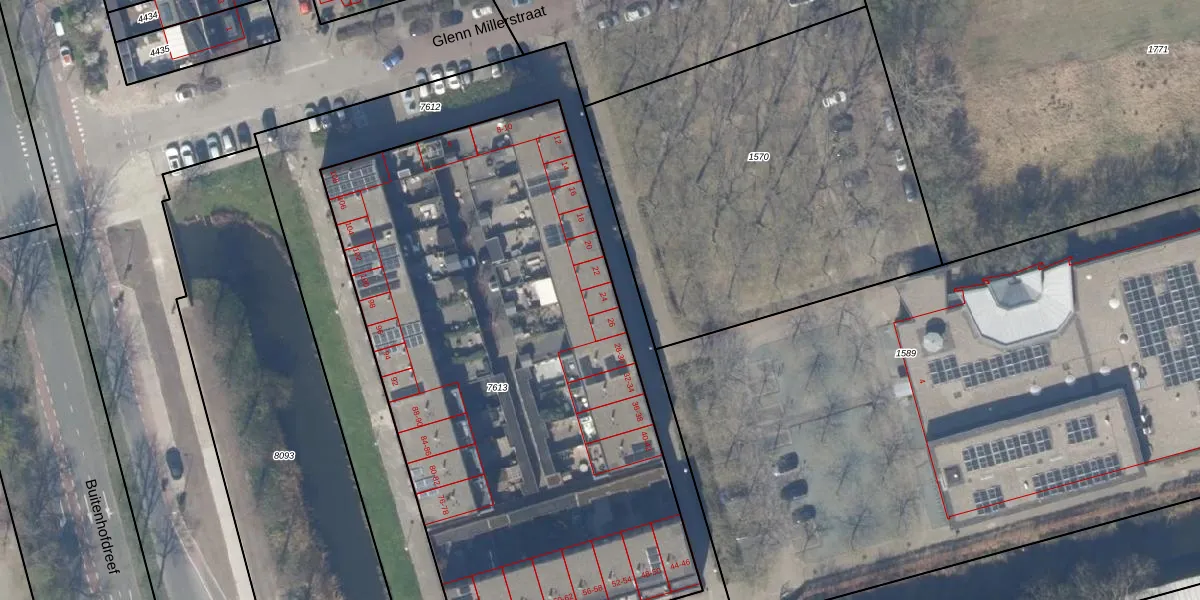 Het perceel waarop Glenn Millerstraat 24 staat heeft een oppervlakte van 3535 m². Dit is een zeer groot perceel. De perceeloppervlakte wordt geregistreerd door het Kadaster. Gedetailleerde informatie over de maten van dit perceel kunt u vinden in het rapport Kadastrale kaart met maatvoering van Glenn Millerstraat 24.