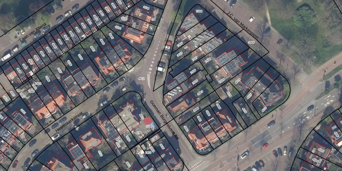 Goeman Borgesiusstraat 5 is gelegen op kadastraal perceel DEL00F7506. Deze kadastrale aanduiding is uniek en wordt gebruikt door het Kadaster om eigendomsrechten en andere zakelijke rechten vast te leggen. Het perceel maakt onderdeel uit van de kadastrale gemeente Delft.
