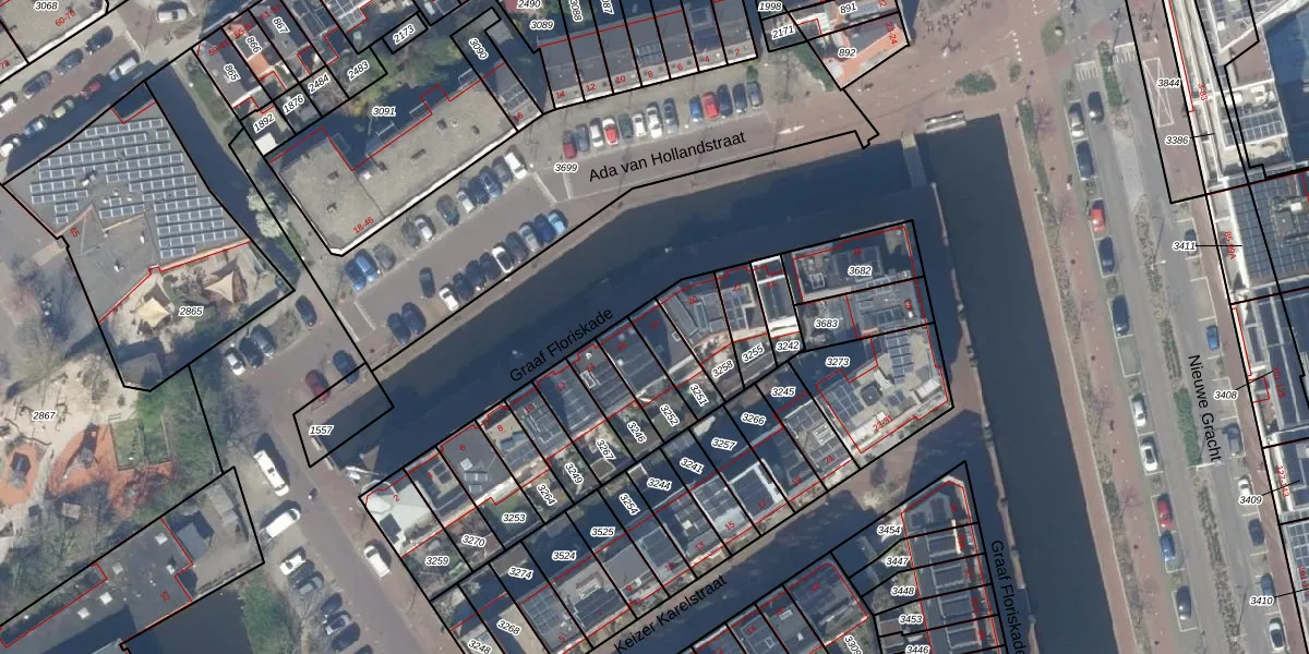 Het adres ligt op het perceel DEL00-O-3251, dat zich in de kadastrale gemeente Delft bevindt. Het perceel is kleiner dan gemiddeld in Delft. Het perceel is 98 m² groot, terwijl het gemiddelde ligt op 924,72 m². Het grootste perceel in de kadastrale gemeente is 64,1 ha. Het kleinste perceel heeft een oppervlakte van 0 m². Op het perceel bevinden zich geen andere adressen. In de Basisregistratie Kadaster (BRK) werden de grenzen van het perceel geregistreerd op 26-07-2019.