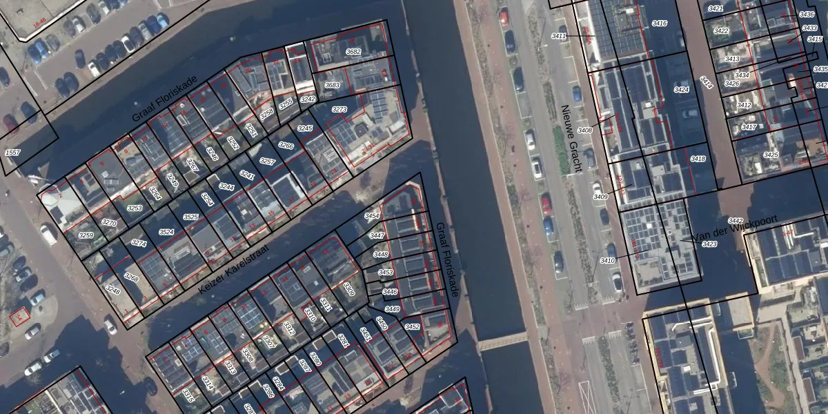 Graaf Floriskade 30 is gelegen op kadastraal perceel DEL00O3454. Deze kadastrale aanduiding is uniek en wordt gebruikt door het Kadaster om eigendomsrechten en andere zakelijke rechten vast te leggen. Het perceel maakt onderdeel uit van de kadastrale gemeente Delft.
