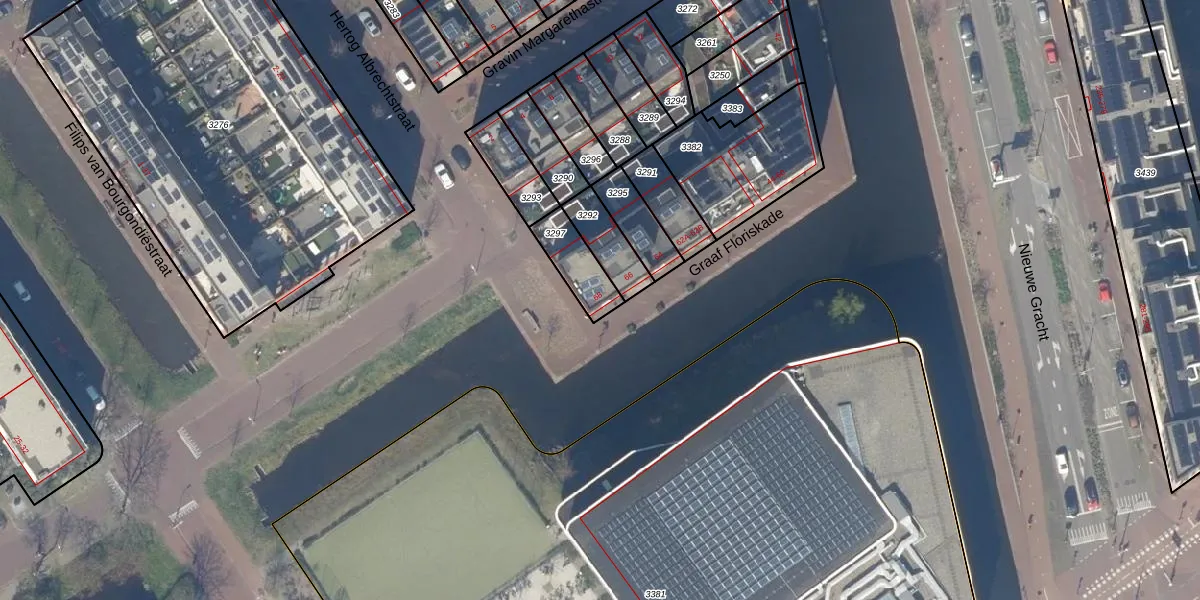 Gebruik de zoekbalk of klik op een perceel voor informatie over de adressen binnen dit perceel.