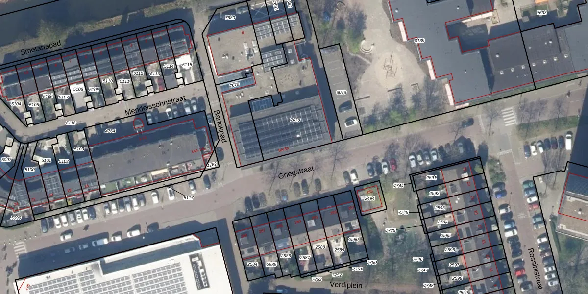 Het perceel waarop Griegstraat 8-G staat heeft een oppervlakte van 881 m². Dit is een groot perceel. De perceeloppervlakte wordt geregistreerd door het Kadaster. Gedetailleerde informatie over de maten van dit perceel kunt u vinden in het rapport Kadastrale kaart met maatvoering van Griegstraat 8-G.