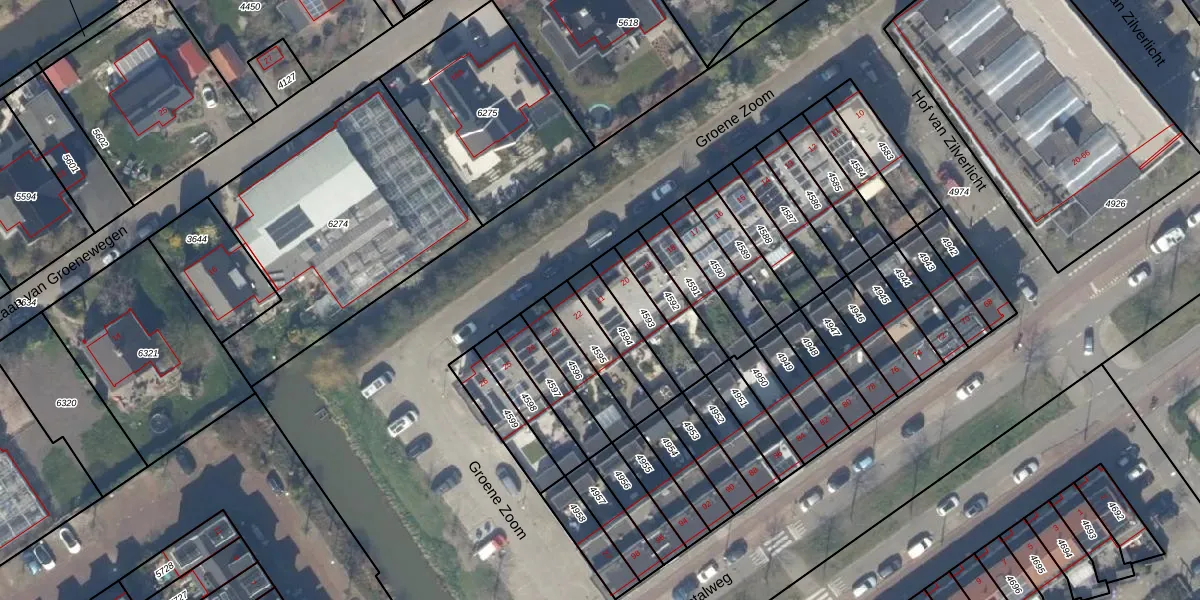 Groene Zoom 21 is gelegen op kadastraal perceel DEL00T4594. Deze kadastrale aanduiding is uniek en wordt gebruikt door het Kadaster om eigendomsrechten en andere zakelijke rechten vast te leggen. Het perceel maakt onderdeel uit van de kadastrale gemeente Delft.