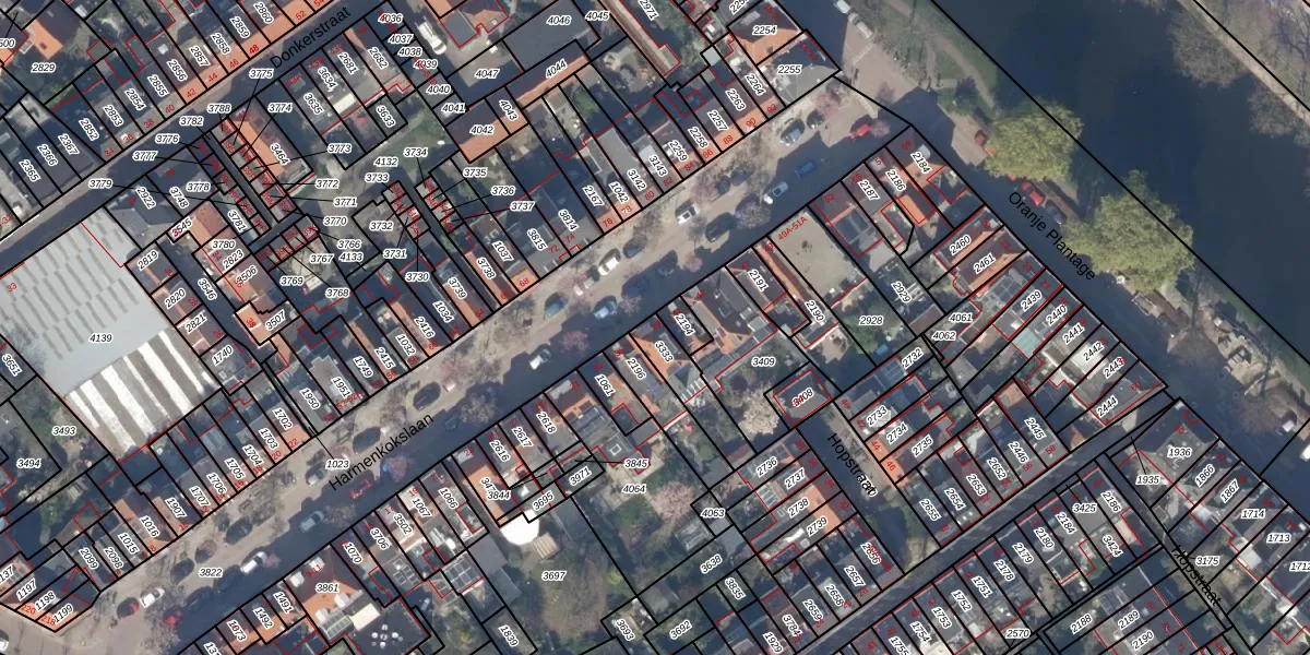 Gebruik de zoekbalk of klik op een perceel voor informatie over de adressen binnen dit perceel.