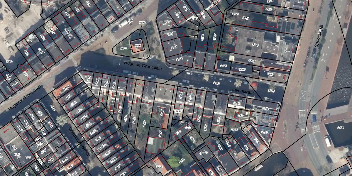 Gebruik de zoekbalk of klik op een perceel voor informatie over de adressen binnen dit perceel.