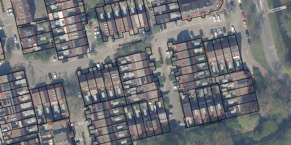 Hazenlaan 14 is gelegen op kadastraal perceel DEL00R6060. Deze kadastrale aanduiding is uniek en wordt gebruikt door het Kadaster om eigendomsrechten en andere zakelijke rechten vast te leggen. Het perceel maakt onderdeel uit van de kadastrale gemeente Delft.
