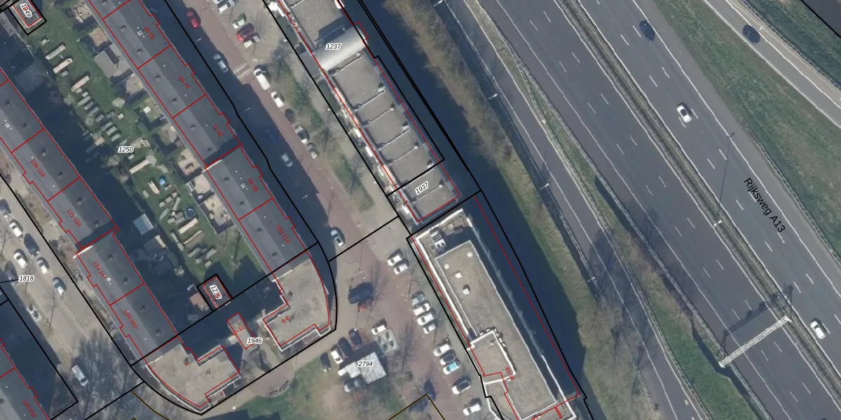 Het adres is gelegen op perceel 1937 in de sectie P en de kadastrale gemeente Delft. De kadastrale aanduiding is aldus DEL00-P-1937. Het perceel is kleiner dan gemiddeld in Delft. Het perceel is 579 m² groot, terwijl het gemiddelde ligt op 923,41 m². Het grootste perceel in de kadastrale gemeente is 64,1 ha. Het kleinste perceel heeft een oppervlakte van 0 m². Er zijn 2 adressen aanwezig op het perceel. De laatste wijziging in het de Basisregistratie Kadaster (BRK) was op 02-02-2012.