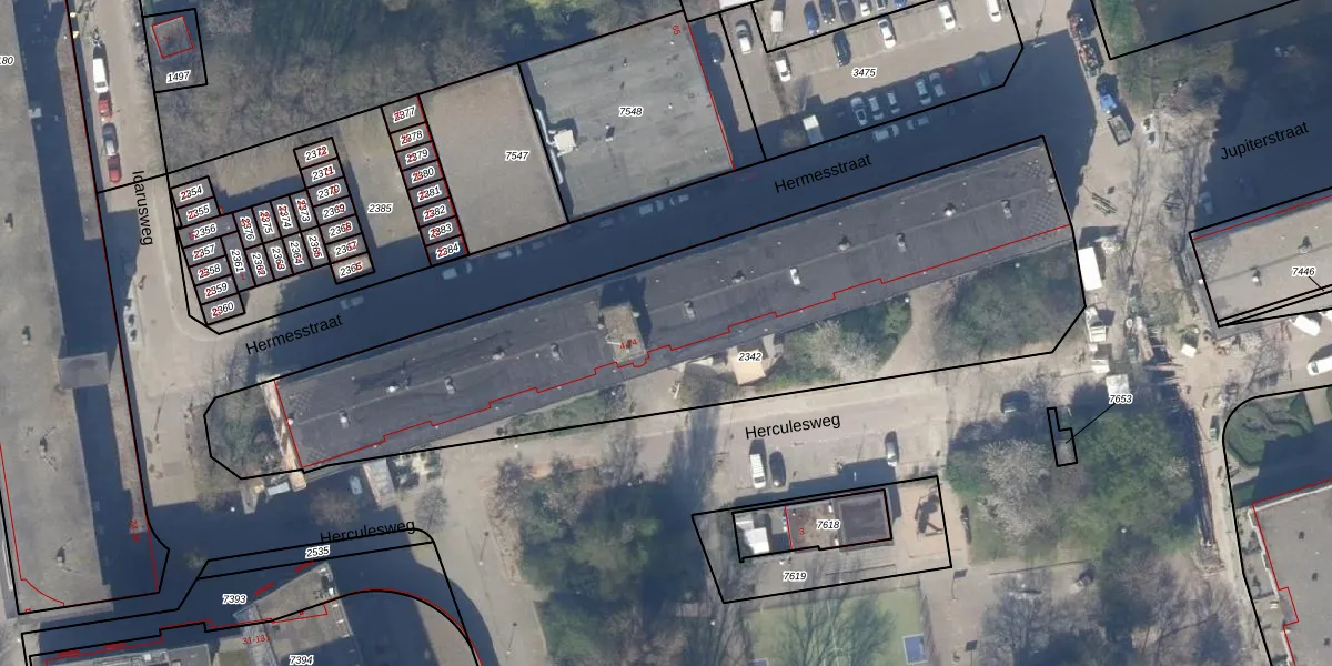 Het perceel waarop Herculesweg 10 staat heeft een oppervlakte van 2950 m². Dit is een zeer groot perceel. De perceeloppervlakte wordt geregistreerd door het Kadaster. Gedetailleerde informatie over de maten van dit perceel kunt u vinden in het rapport Kadastrale kaart met maatvoering van Herculesweg 10.