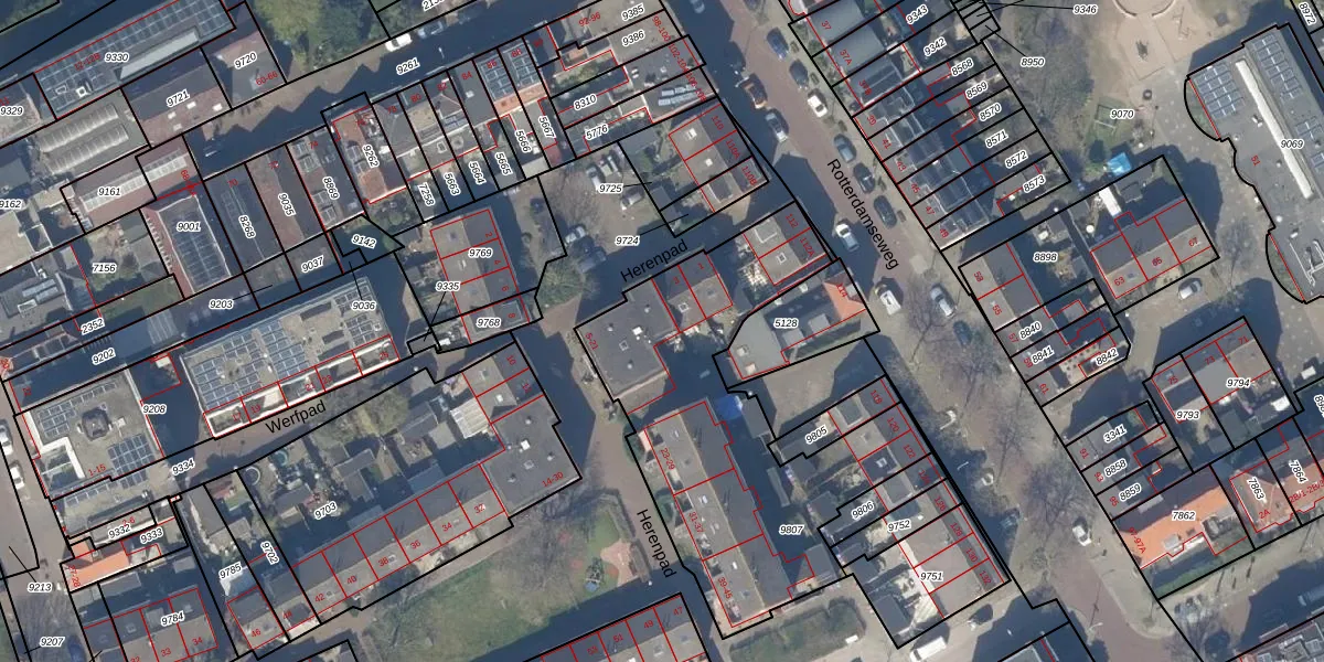 Herenpad 13 is gelegen op kadastraal perceel DEL00A9807. Deze kadastrale aanduiding is uniek en wordt gebruikt door het Kadaster om eigendomsrechten en andere zakelijke rechten vast te leggen. Het perceel maakt onderdeel uit van de kadastrale gemeente Delft.
