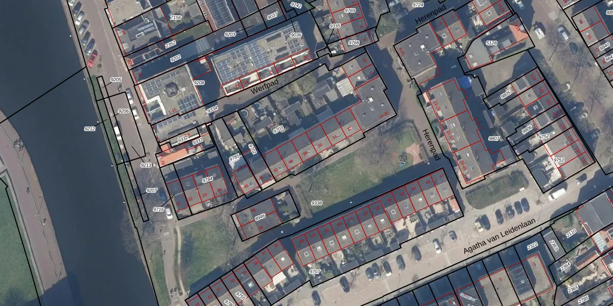 Herenpad 38 is gelegen op kadastraal perceel DEL00A9703. Deze kadastrale aanduiding is uniek en wordt gebruikt door het Kadaster om eigendomsrechten en andere zakelijke rechten vast te leggen. Het perceel maakt onderdeel uit van de kadastrale gemeente Delft.