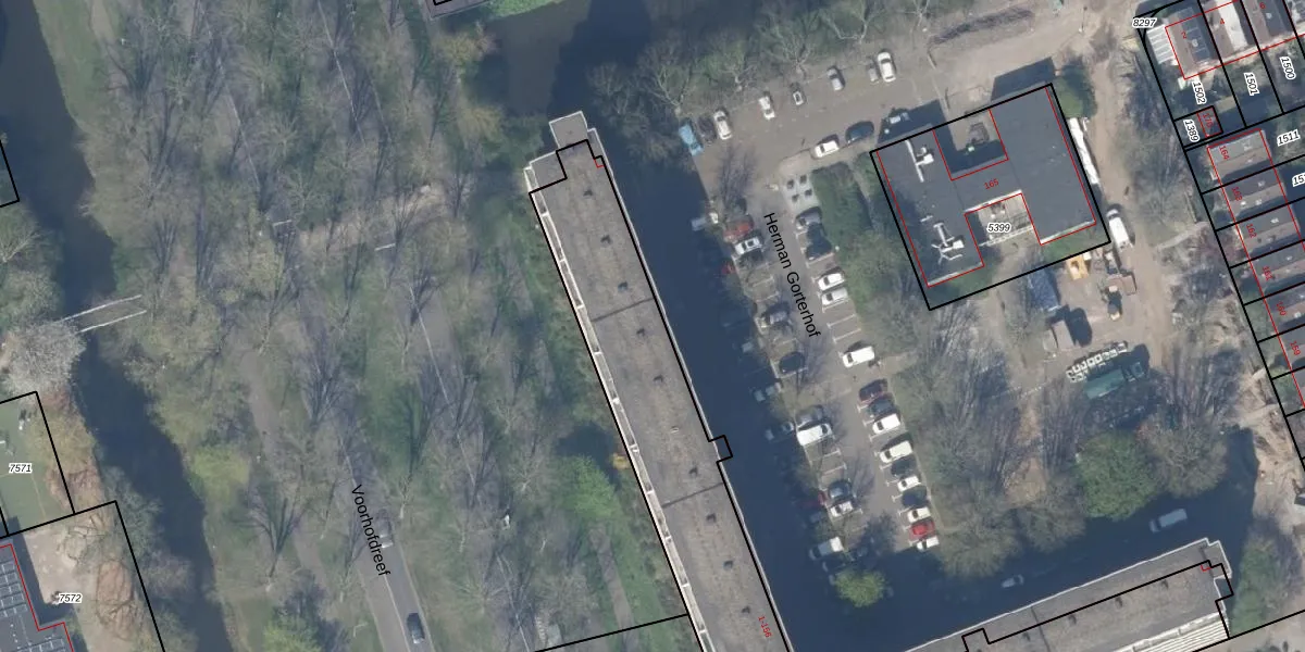 Het perceel waarop Herman Gorterhof 2 staat heeft een oppervlakte van 1953 m². Dit is een zeer groot perceel. De perceeloppervlakte wordt geregistreerd door het Kadaster. Gedetailleerde informatie over de maten van dit perceel kunt u vinden in het rapport Kadastrale kaart met maatvoering van Herman Gorterhof 2.