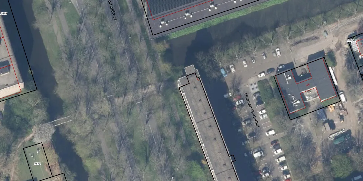 Het perceel waarop Herman Gorterhof 31 staat heeft een oppervlakte van 1953 m². Dit is een zeer groot perceel. De perceeloppervlakte wordt geregistreerd door het Kadaster. Gedetailleerde informatie over de maten van dit perceel kunt u vinden in het rapport Kadastrale kaart met maatvoering van Herman Gorterhof 31.