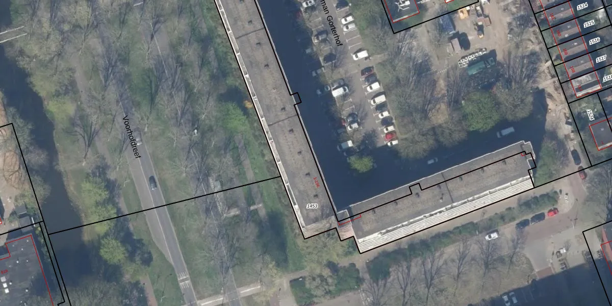 Het perceel waarop Herman Gorterhof 9 staat heeft een oppervlakte van 1953 m². Dit is een zeer groot perceel. De perceeloppervlakte wordt geregistreerd door het Kadaster. Gedetailleerde informatie over de maten van dit perceel kunt u vinden in het rapport Kadastrale kaart met maatvoering van Herman Gorterhof 9.