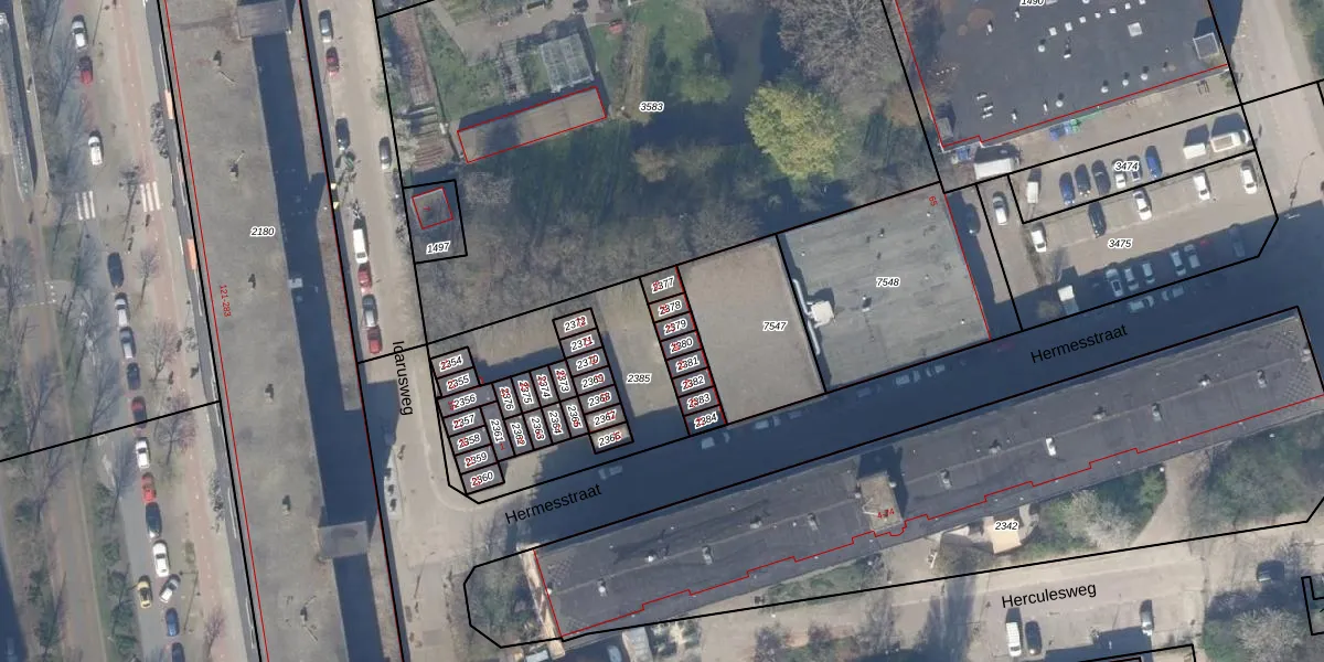 Het perceel waarop Hermesstraat 37 staat heeft een oppervlakte van 18 m². Dit is een klein perceel. De perceeloppervlakte wordt geregistreerd door het Kadaster. Gedetailleerde informatie over de maten van dit perceel kunt u vinden in het rapport Kadastrale kaart met maatvoering van Hermesstraat 37.