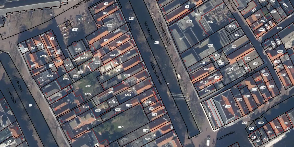 Hippolytusbuurt 25 is gelegen op kadastraal perceel DEL00C3383. Deze kadastrale aanduiding is uniek en wordt gebruikt door het Kadaster om eigendomsrechten en andere zakelijke rechten vast te leggen. Het perceel maakt onderdeel uit van de kadastrale gemeente Delft.