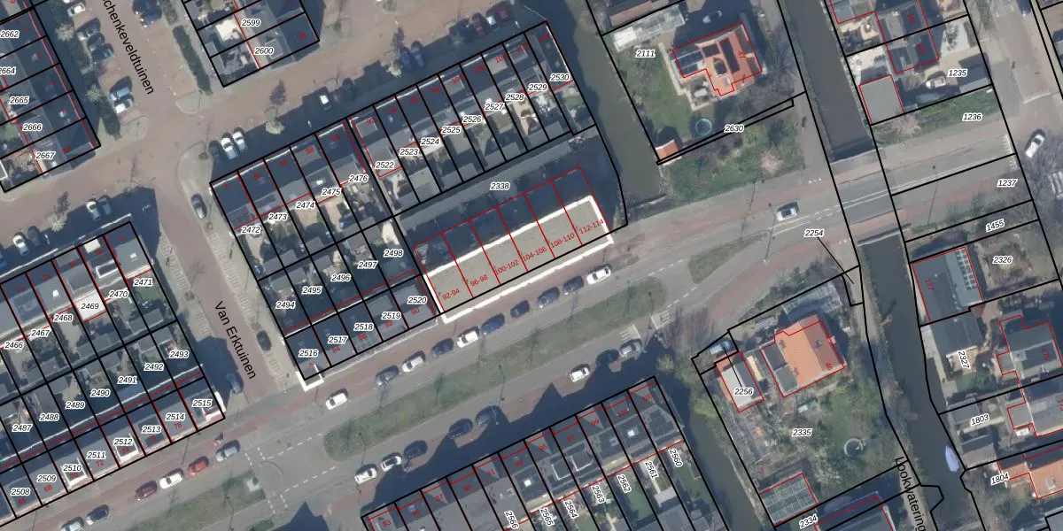 Hoefslagendreef 104 is gelegen op kadastraal perceel DEL00V2338. Deze kadastrale aanduiding is uniek en wordt gebruikt door het Kadaster om eigendomsrechten en andere zakelijke rechten vast te leggen. Het perceel maakt onderdeel uit van de kadastrale gemeente Delft.