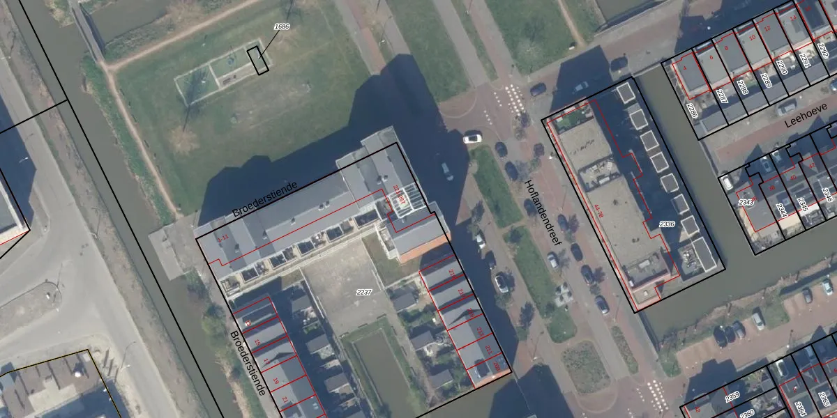 Hoflandendreef 265 is gelegen op kadastraal perceel DEL00V2237. Deze kadastrale aanduiding is uniek en wordt gebruikt door het Kadaster om eigendomsrechten en andere zakelijke rechten vast te leggen. Het perceel maakt onderdeel uit van de kadastrale gemeente Delft.