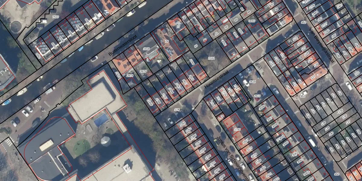 Het perceel waarop Hoornsestraat 29 staat heeft een oppervlakte van 86 m². Dit is een klein perceel. De perceeloppervlakte wordt geregistreerd door het Kadaster. Gedetailleerde informatie over de maten van dit perceel kunt u vinden in het rapport Kadastrale kaart met maatvoering van Hoornsestraat 29.