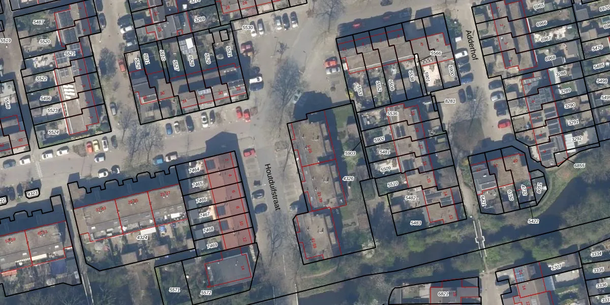 Houtduifstraat 19 is gelegen op kadastraal perceel DEL00R4326. Deze kadastrale aanduiding is uniek en wordt gebruikt door het Kadaster om eigendomsrechten en andere zakelijke rechten vast te leggen. Het perceel maakt onderdeel uit van de kadastrale gemeente Delft.