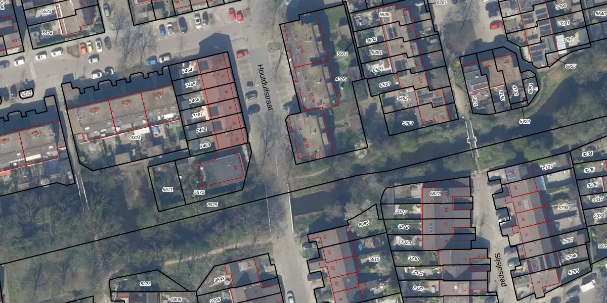Houtduifstraat 45 is gelegen op kadastraal perceel DEL00R4326. Deze kadastrale aanduiding is uniek en wordt gebruikt door het Kadaster om eigendomsrechten en andere zakelijke rechten vast te leggen. Het perceel maakt onderdeel uit van de kadastrale gemeente Delft.