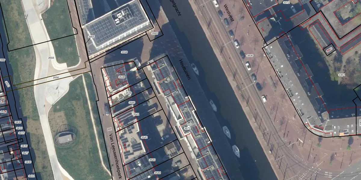 Houttuinen 36-B is gelegen op kadastraal perceel DEL00O3671. Deze kadastrale aanduiding is uniek en wordt gebruikt door het Kadaster om eigendomsrechten en andere zakelijke rechten vast te leggen. Het perceel maakt onderdeel uit van de kadastrale gemeente Delft.