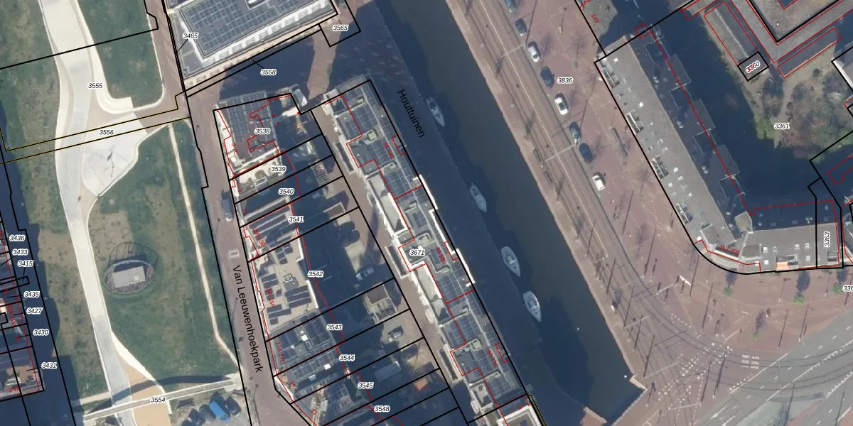 Houttuinen 46 is gelegen op kadastraal perceel DEL00O3671. Deze kadastrale aanduiding is uniek en wordt gebruikt door het Kadaster om eigendomsrechten en andere zakelijke rechten vast te leggen. Het perceel maakt onderdeel uit van de kadastrale gemeente Delft.