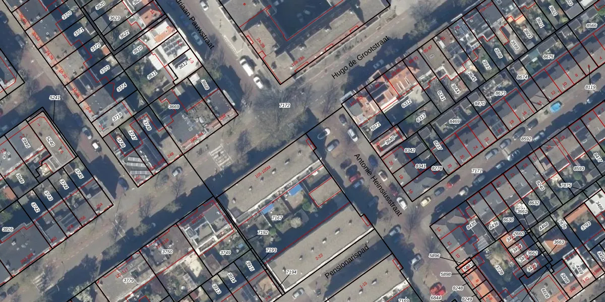 Hugo de Grootstraat 105-A is gelegen op kadastraal perceel DEL00F7167. Deze kadastrale aanduiding is uniek en wordt gebruikt door het Kadaster om eigendomsrechten en andere zakelijke rechten vast te leggen. Het perceel maakt onderdeel uit van de kadastrale gemeente Delft.