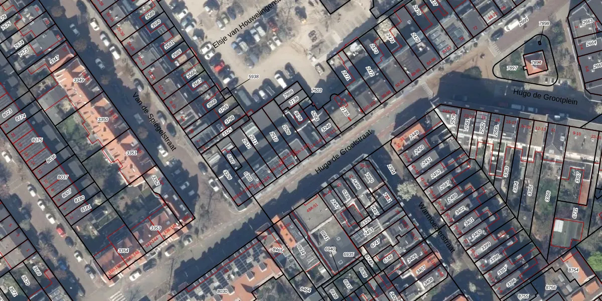 Hugo de Grootstraat 120-A is gelegen op kadastraal perceel DEL00F2509. Deze kadastrale aanduiding is uniek en wordt gebruikt door het Kadaster om eigendomsrechten en andere zakelijke rechten vast te leggen. Het perceel maakt onderdeel uit van de kadastrale gemeente Delft.