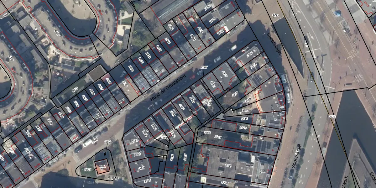 Hugo de Grootstraat 13 is gelegen op kadastraal perceel DEL00F2483. Deze kadastrale aanduiding is uniek en wordt gebruikt door het Kadaster om eigendomsrechten en andere zakelijke rechten vast te leggen. Het perceel maakt onderdeel uit van de kadastrale gemeente Delft.