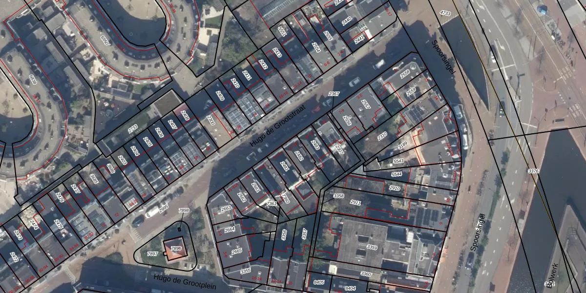 Hugo de Grootstraat 17 is gelegen op kadastraal perceel DEL00F2482. Deze kadastrale aanduiding is uniek en wordt gebruikt door het Kadaster om eigendomsrechten en andere zakelijke rechten vast te leggen. Het perceel maakt onderdeel uit van de kadastrale gemeente Delft.