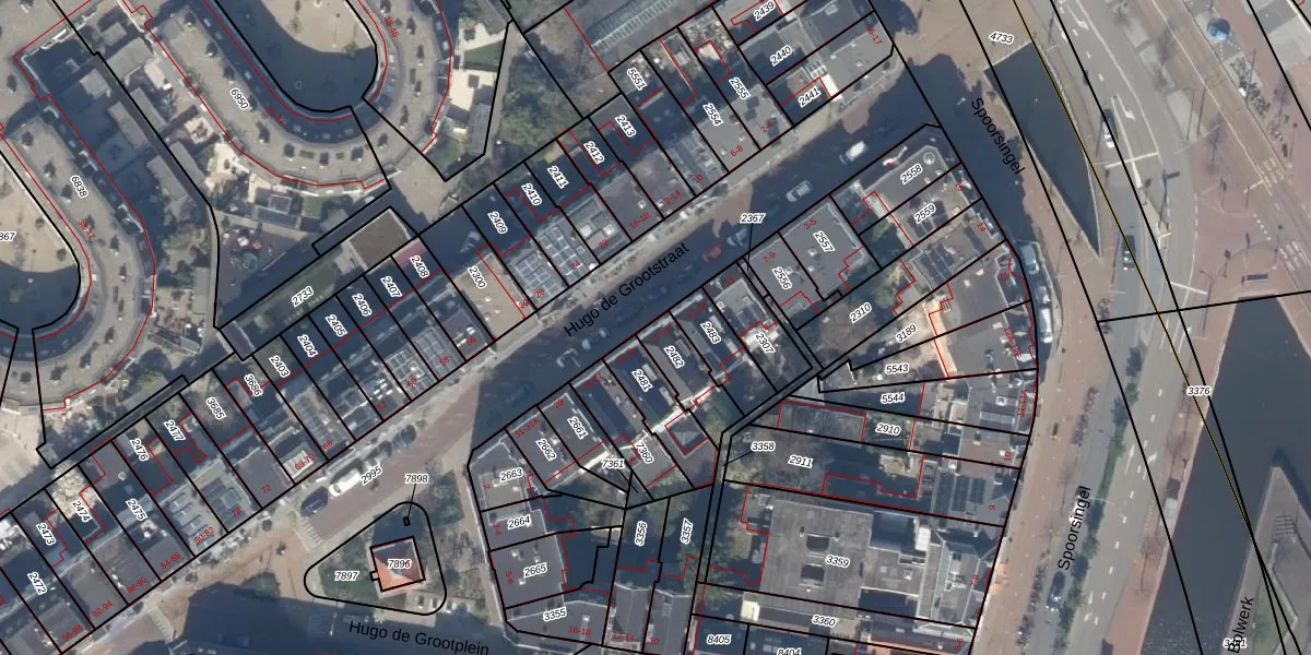 Hugo de Grootstraat 19 is gelegen op kadastraal perceel DEL00F2482. Deze kadastrale aanduiding is uniek en wordt gebruikt door het Kadaster om eigendomsrechten en andere zakelijke rechten vast te leggen. Het perceel maakt onderdeel uit van de kadastrale gemeente Delft.