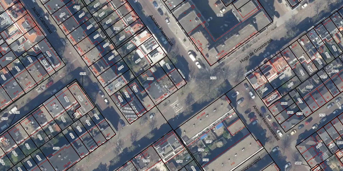 Het perceel waarop Hugo de Grootstraat 242 staat heeft een oppervlakte van 318 m². Dit is een groot perceel. De perceeloppervlakte wordt geregistreerd door het Kadaster. Gedetailleerde informatie over de maten van dit perceel kunt u vinden in het rapport Kadastrale kaart met maatvoering van Hugo de Grootstraat 242.