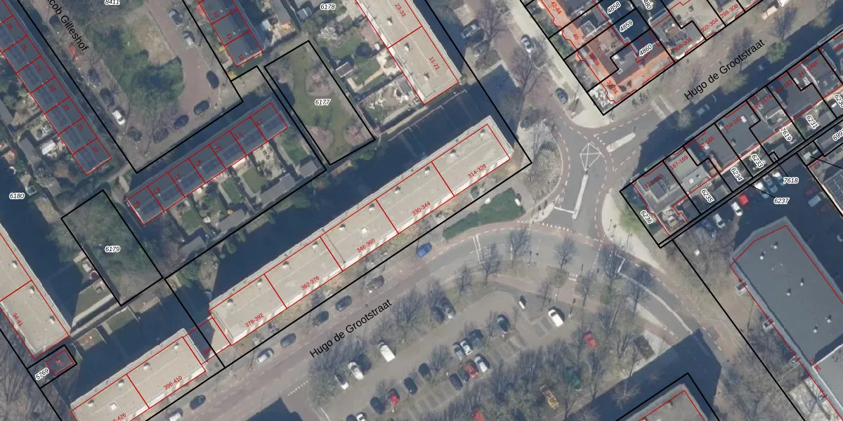 Hugo de Grootstraat 344 is gelegen op kadastraal perceel DEL00F6178. Deze kadastrale aanduiding is uniek en wordt gebruikt door het Kadaster om eigendomsrechten en andere zakelijke rechten vast te leggen. Het perceel maakt onderdeel uit van de kadastrale gemeente Delft.