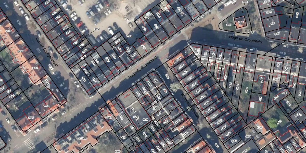 Het perceel waarop Hugo de Grootstraat 37 staat heeft een oppervlakte van 59 m². Dit is een klein perceel. De perceeloppervlakte wordt geregistreerd door het Kadaster. Gedetailleerde informatie over de maten van dit perceel kunt u vinden in het rapport Kadastrale kaart met maatvoering van Hugo de Grootstraat 37.
