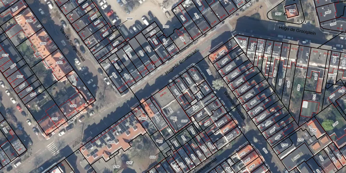 Het perceel waarop Hugo de Grootstraat 49 staat heeft een oppervlakte van 88 m². Dit is een klein perceel. De perceeloppervlakte wordt geregistreerd door het Kadaster. Gedetailleerde informatie over de maten van dit perceel kunt u vinden in het rapport Kadastrale kaart met maatvoering van Hugo de Grootstraat 49.