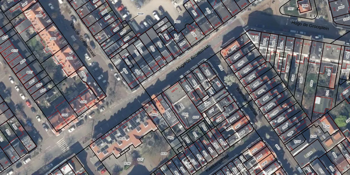 Hugo de Grootstraat 49-B is gelegen op kadastraal perceel DEL00F6941. Deze kadastrale aanduiding is uniek en wordt gebruikt door het Kadaster om eigendomsrechten en andere zakelijke rechten vast te leggen. Het perceel maakt onderdeel uit van de kadastrale gemeente Delft.