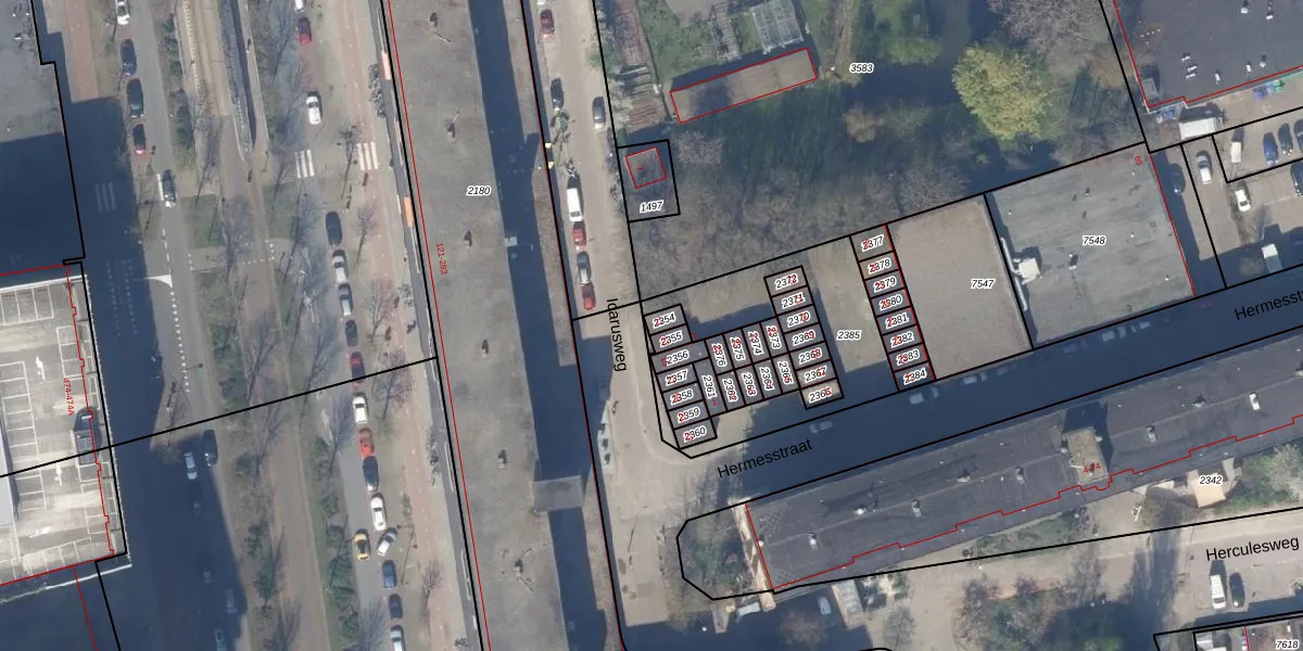 Gebruik de zoekbalk of klik op een perceel voor informatie over de adressen binnen dit perceel.