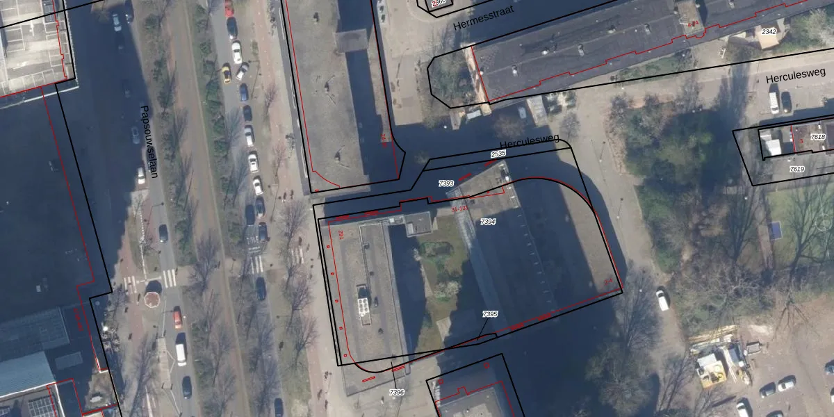 Het adres ligt op het perceel DEL00-R-7394, dat zich in de kadastrale gemeente Delft bevindt. De oppervlakte van het perceel is 2258 m². Dat is groter dan gemiddeld in Delft, waar de gemiddelde perceeloppervlakte op 924,79 m² ligt. Het grootste perceel in de kadastrale gemeente is 64,1 ha. Het kleinste perceel heeft een oppervlakte van 0 m². Op het perceel zijn 54 adressen aanwezig. In de Basisregistratie Kadaster (BRK) werden de grenzen van het perceel geregistreerd op 09-12-2009.