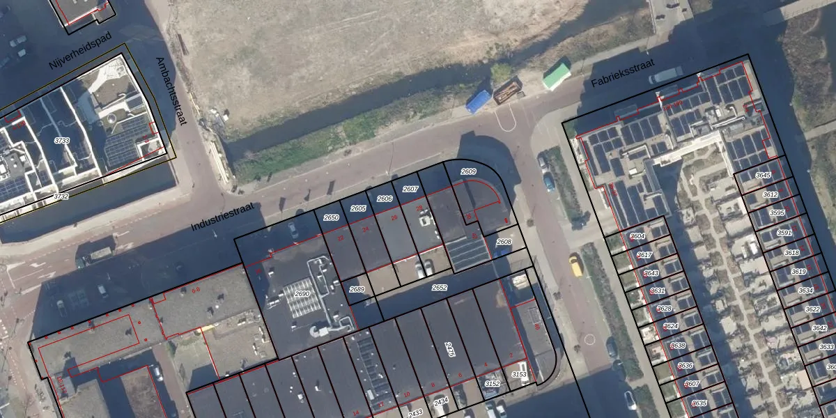 Industriestraat 28 is gelegen op kadastraal perceel DEL00O2607. Deze kadastrale aanduiding is uniek en wordt gebruikt door het Kadaster om eigendomsrechten en andere zakelijke rechten vast te leggen. Het perceel maakt onderdeel uit van de kadastrale gemeente Delft.