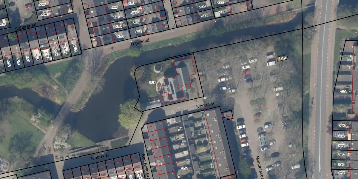 Het perceel waarop Ivoorkust 1 staat heeft een oppervlakte van 835 m². Dit is een groot perceel. De perceeloppervlakte wordt geregistreerd door het Kadaster. Gedetailleerde informatie over de maten van dit perceel kunt u vinden in het rapport Kadastrale kaart met maatvoering van Ivoorkust 1.