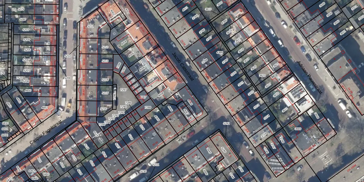 Het perceel waarop Jacob Catsstraat 11 staat heeft een oppervlakte van 182 m². Dit is een middelgroot perceel. De perceeloppervlakte wordt geregistreerd door het Kadaster. Gedetailleerde informatie over de maten van dit perceel kunt u vinden in het rapport Kadastrale kaart met maatvoering van Jacob Catsstraat 11.