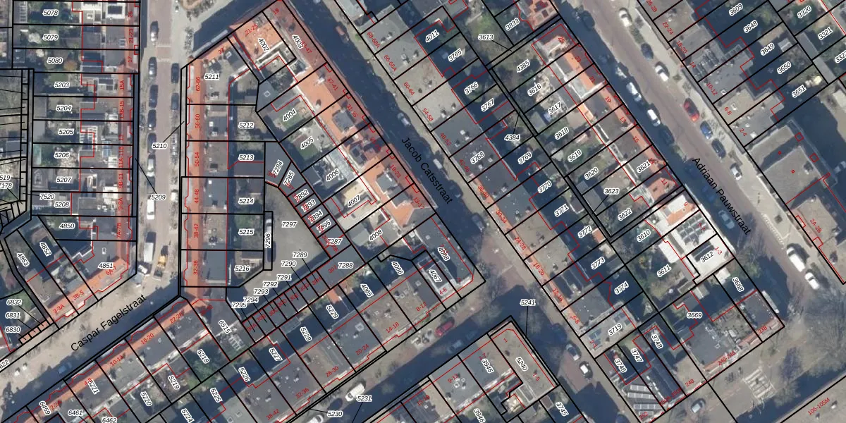 Het perceel waarop Jacob Catsstraat 13 staat heeft een oppervlakte van 181 m². Dit is een middelgroot perceel. De perceeloppervlakte wordt geregistreerd door het Kadaster. Gedetailleerde informatie over de maten van dit perceel kunt u vinden in het rapport Kadastrale kaart met maatvoering van Jacob Catsstraat 13.