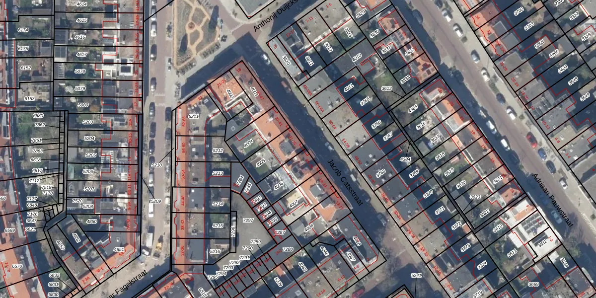 Het perceel waarop Jacob Catsstraat 31 staat heeft een oppervlakte van 180 m². Dit is een middelgroot perceel. De perceeloppervlakte wordt geregistreerd door het Kadaster. Gedetailleerde informatie over de maten van dit perceel kunt u vinden in het rapport Kadastrale kaart met maatvoering van Jacob Catsstraat 31.