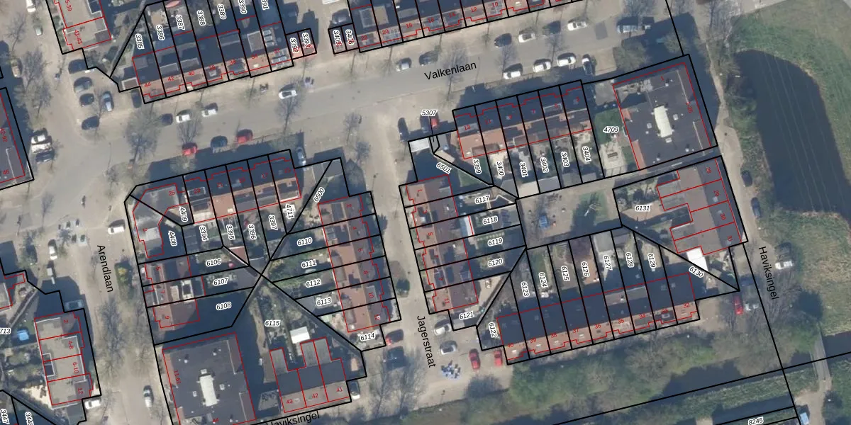 Gebruik de zoekbalk of klik op een perceel voor informatie over de adressen binnen dit perceel.