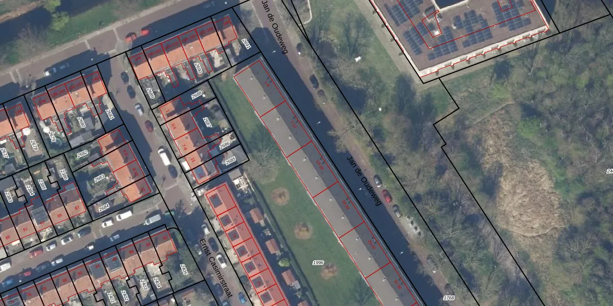 Jan de Oudeweg 14 is gelegen op kadastraal perceel DEL00K1996. Deze kadastrale aanduiding is uniek en wordt gebruikt door het Kadaster om eigendomsrechten en andere zakelijke rechten vast te leggen. Het perceel maakt onderdeel uit van de kadastrale gemeente Delft.