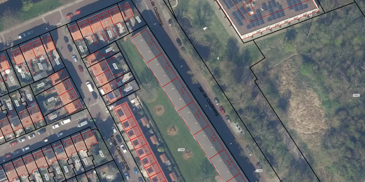 Jan de Oudeweg 15 is gelegen op kadastraal perceel DEL00K1996. Deze kadastrale aanduiding is uniek en wordt gebruikt door het Kadaster om eigendomsrechten en andere zakelijke rechten vast te leggen. Het perceel maakt onderdeel uit van de kadastrale gemeente Delft.