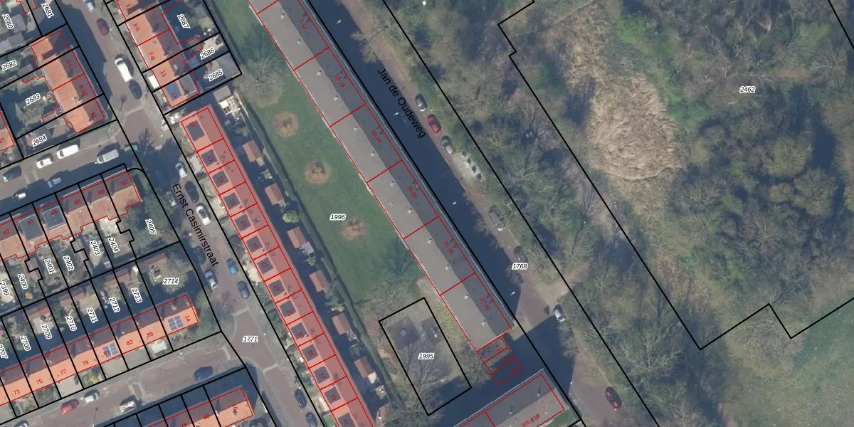 Jan de Oudeweg 29 is gelegen op kadastraal perceel DEL00K1996. Deze kadastrale aanduiding is uniek en wordt gebruikt door het Kadaster om eigendomsrechten en andere zakelijke rechten vast te leggen. Het perceel maakt onderdeel uit van de kadastrale gemeente Delft.