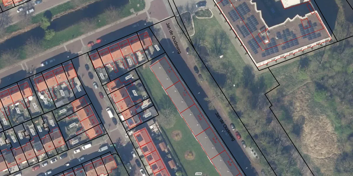 Jan de Oudeweg 8 is gelegen op kadastraal perceel DEL00K1996. Deze kadastrale aanduiding is uniek en wordt gebruikt door het Kadaster om eigendomsrechten en andere zakelijke rechten vast te leggen. Het perceel maakt onderdeel uit van de kadastrale gemeente Delft.